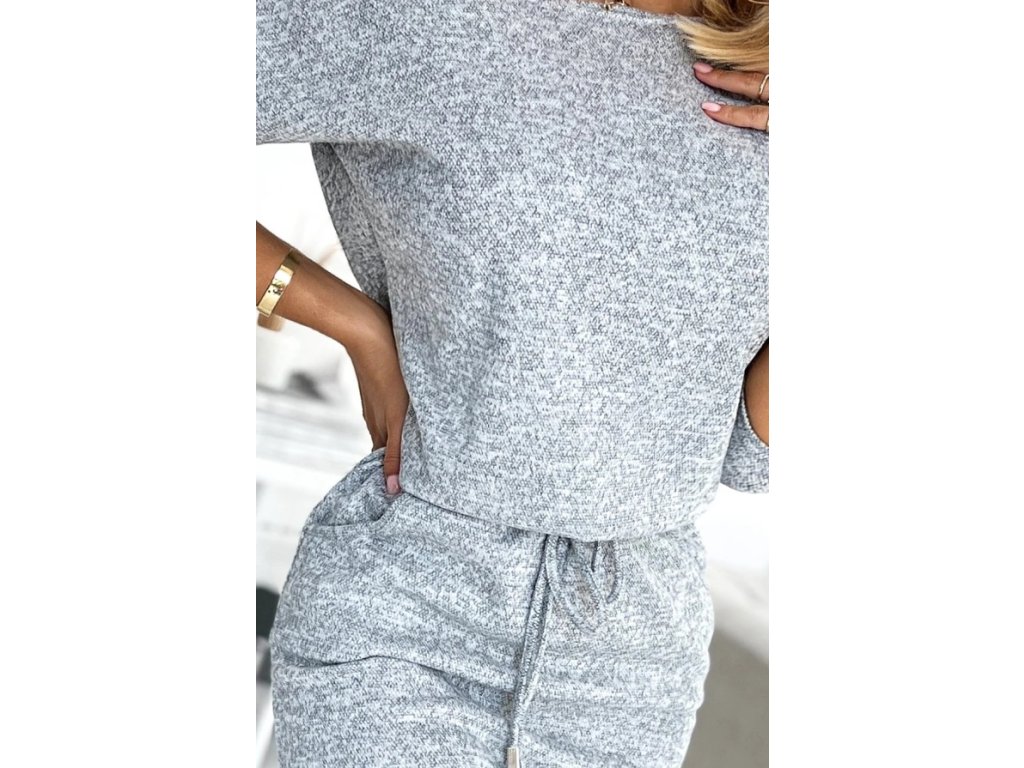 Denní šaty s kapsami a 3/4 rukávy. Vyrobeno z hřejivého svetrového materiálu v šedé barvě.